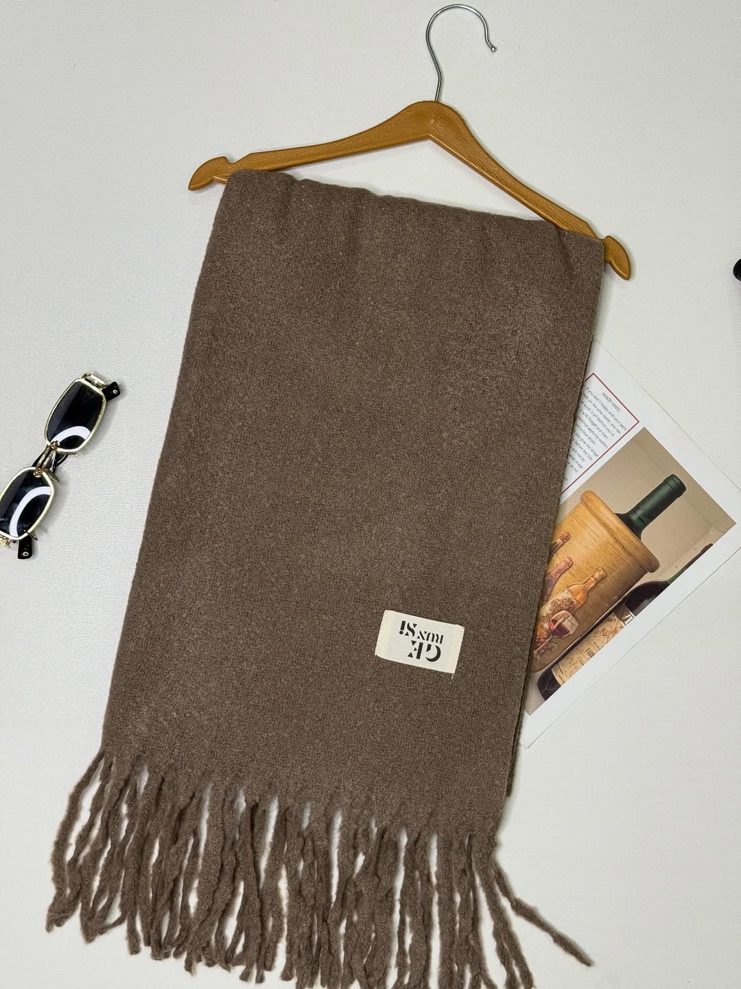 شال شیک و باکیفیتی با طراحی حولهای، فوقالعاده لطیف و خوشحالت، مناسب برای پاییز و زمستان.